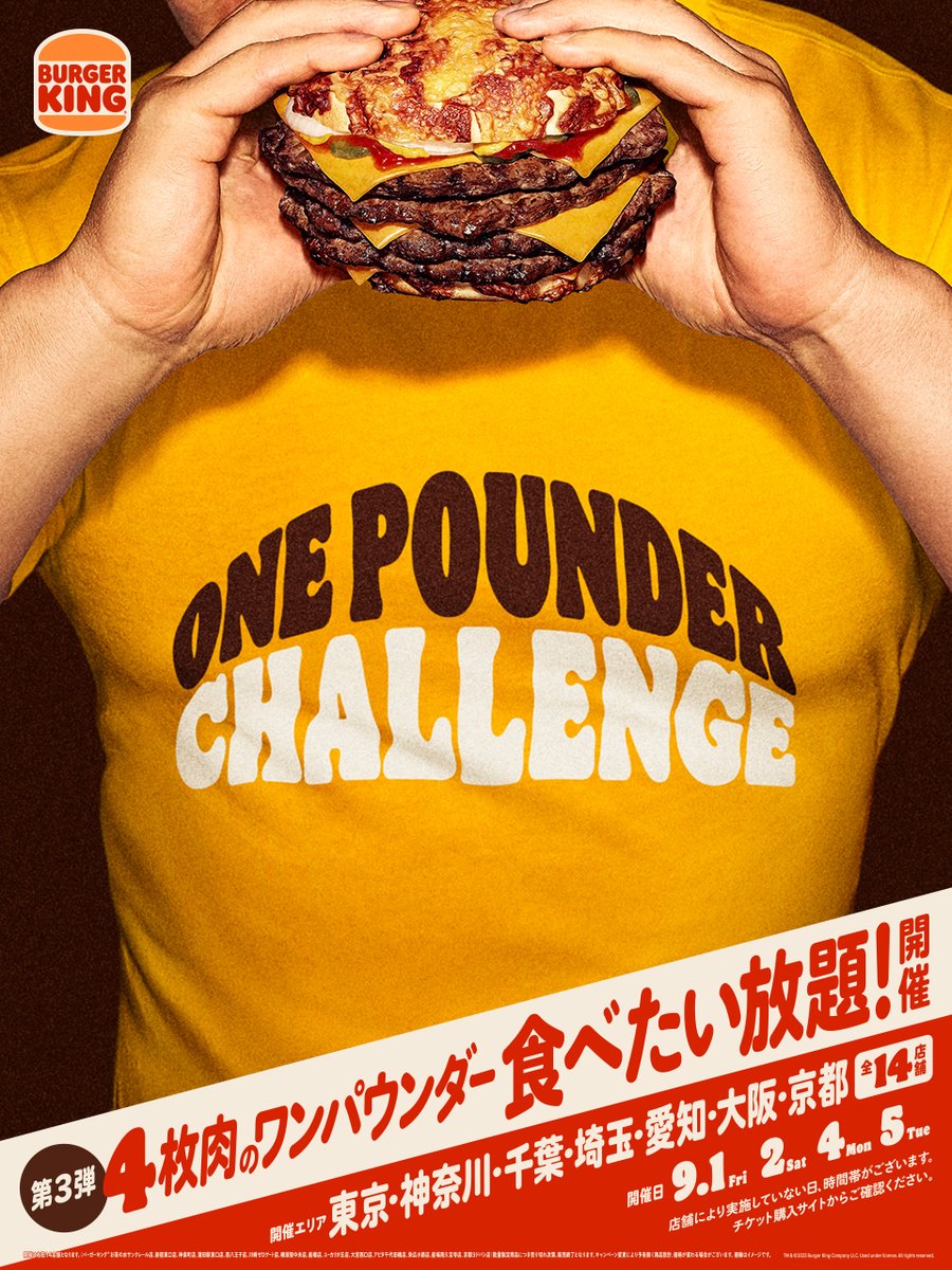 @shinotherapy絶対行く‼️バーガーキング🍔 毎回チケット即完売のバーガーキング® 人気イベントが全国35店舗に拡大!『ワンパウンダー チャレンジ2024』第3弾!4枚肉の超大型バーガー『にんにく・ガーリック ザ・ワンパウンダー』が食べたい放題 prtimes.jp/main/html/rd/p… @PRTIMES_JPから